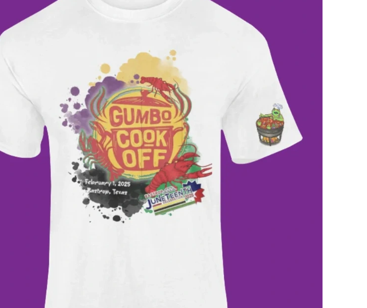 Get ready to show your support and style for the Bastrop Juneteenth Celebration Gumbo Cook-Off with our official T-shirt! 🎉